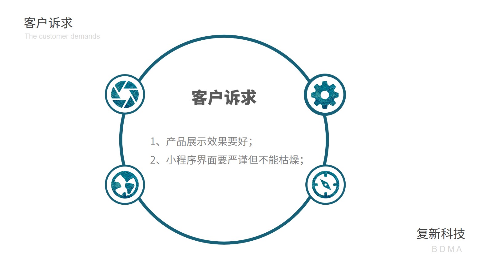 客户主要想要两个效果: 1、产品展示效果要好; 2、小程序界面要严谨但不能枯燥