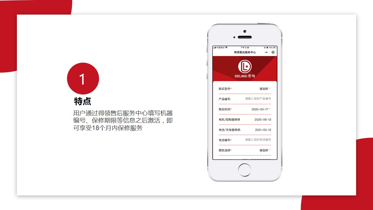 用户通过得领售后服务中心填写机器编号、保修期限等信息之后激活,即可享受18个月内保修服务
