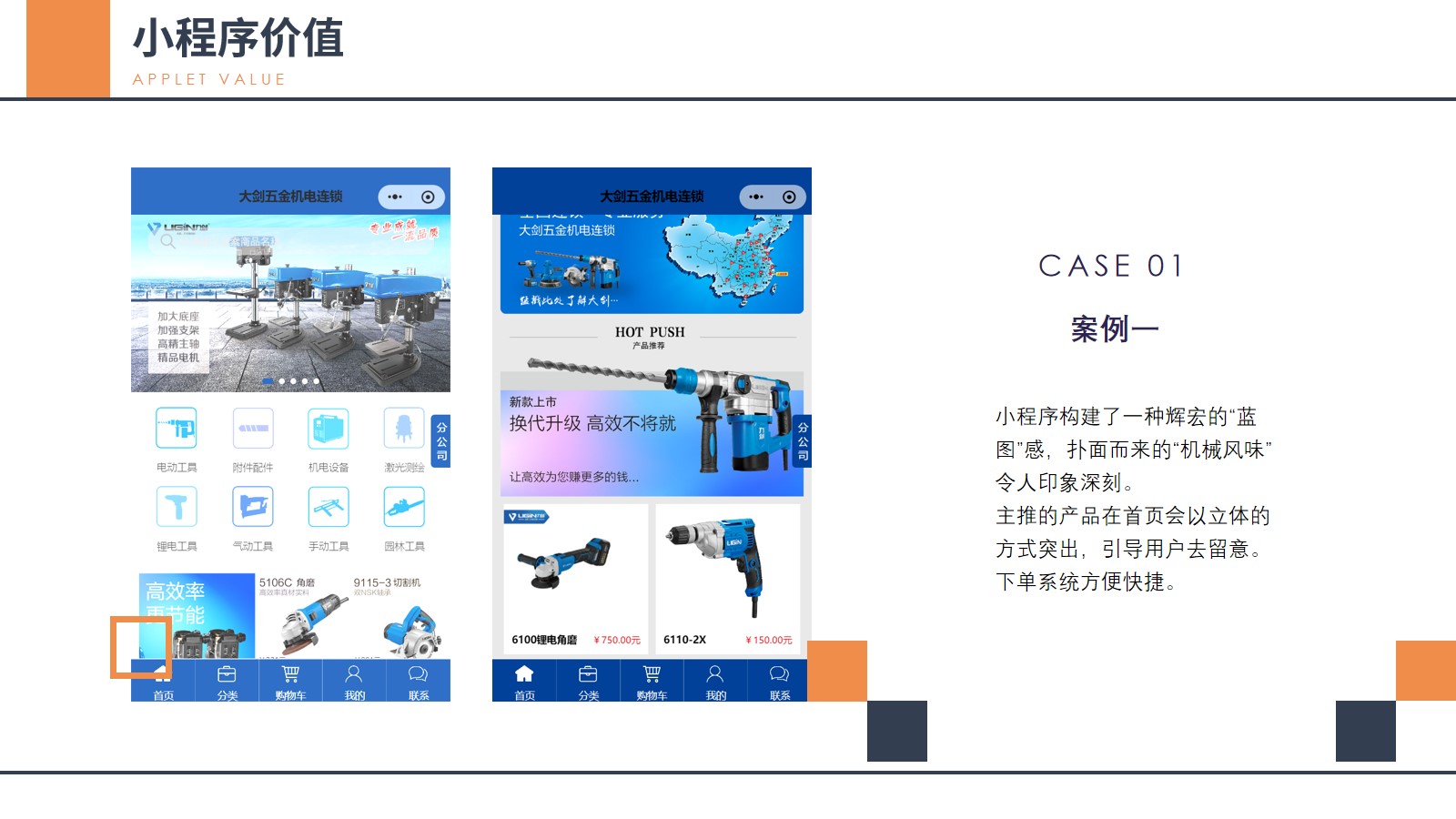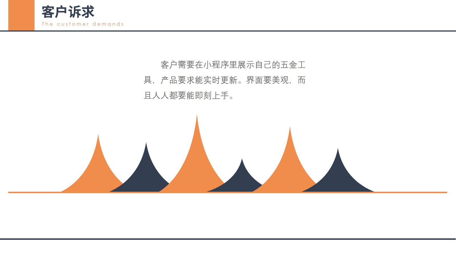客户需要在小程序里展示自己的五金工具,产品要求能实时更新。界面要美观,而且人人都要能即刻上手。